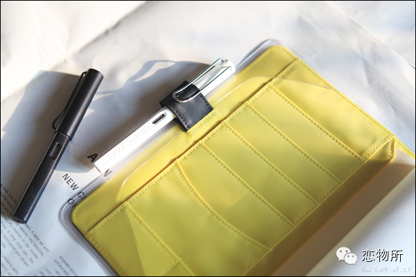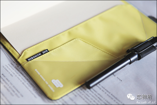 本皮的里面也是尼龙,这款黑色外皮里面配的是姜黄色(每款本皮颜色设计都不同)。封皮里的各种小口袋可以放一些记手帳用的小东西,便利贴啊、分装胶带啊、标签贴啊之类的。